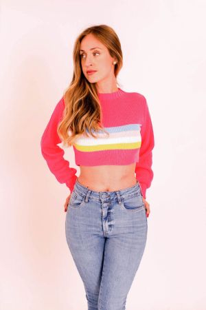 CROPPED TRICOT GOLA ALTA LISTRADO
