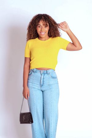 CROPPED TRICOT MANGAS CURTAS COMEIA