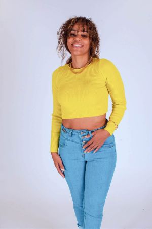 CROPPED CANELADO MANGAS LONGAS